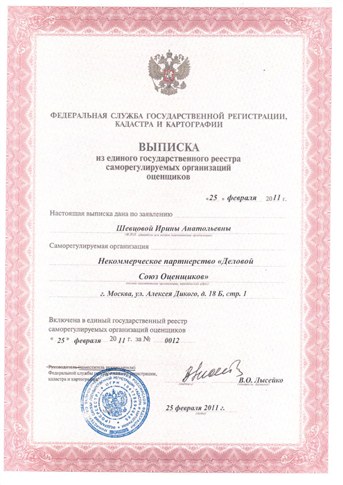 Запись в реестре Саморегулируемых организаций оценщиков: №0012