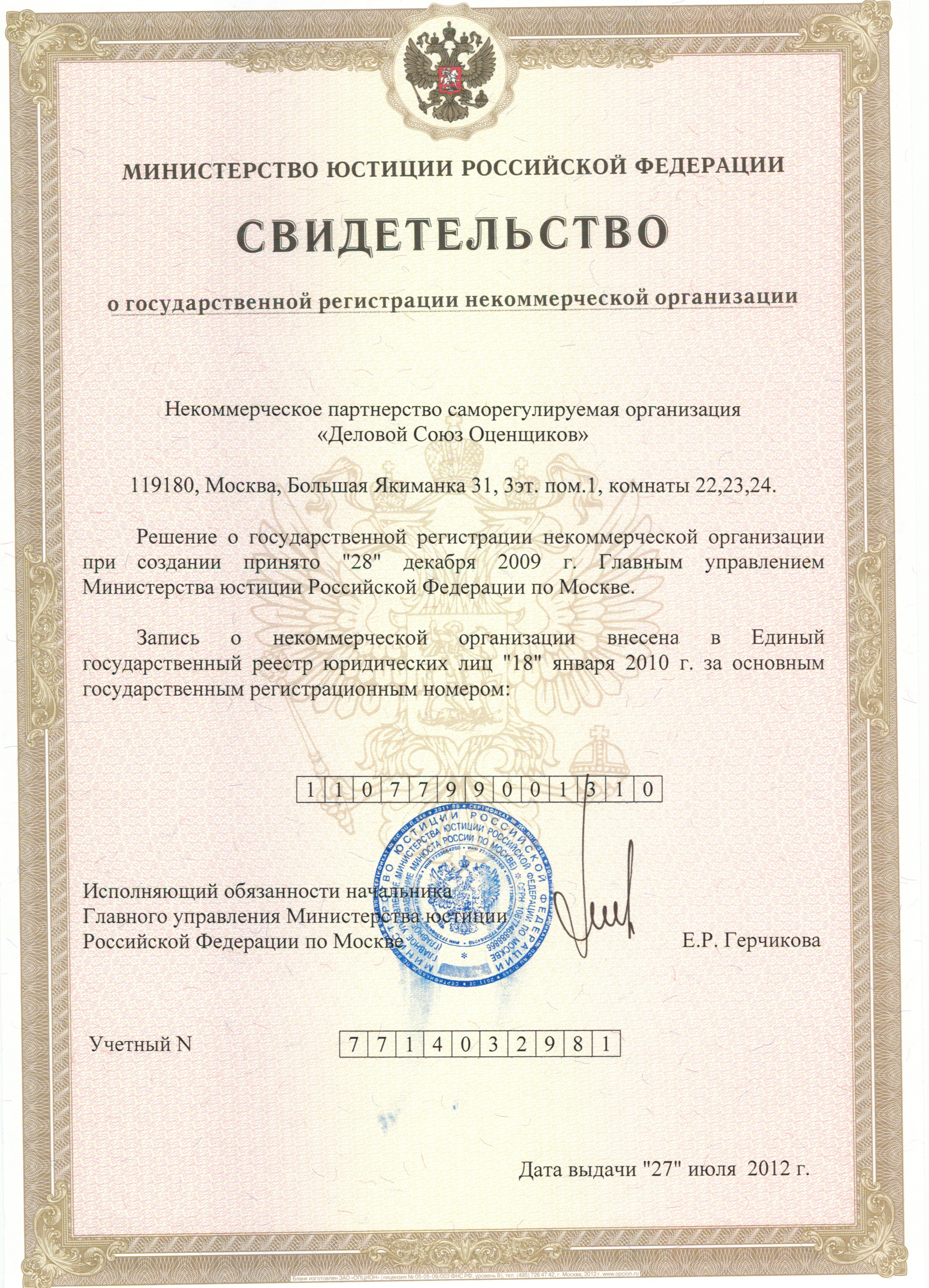 ОГРН: 1107799001310