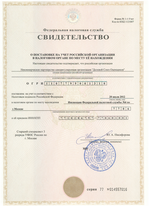 Запись в реестре Саморегулируемых организаций оценщиков: №0012
